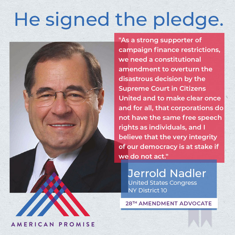 Our team will keep track of and report on who has and hasn't signed the pledge. We'll then work to turn those pledges into action and leadership on the 28th Amendment.